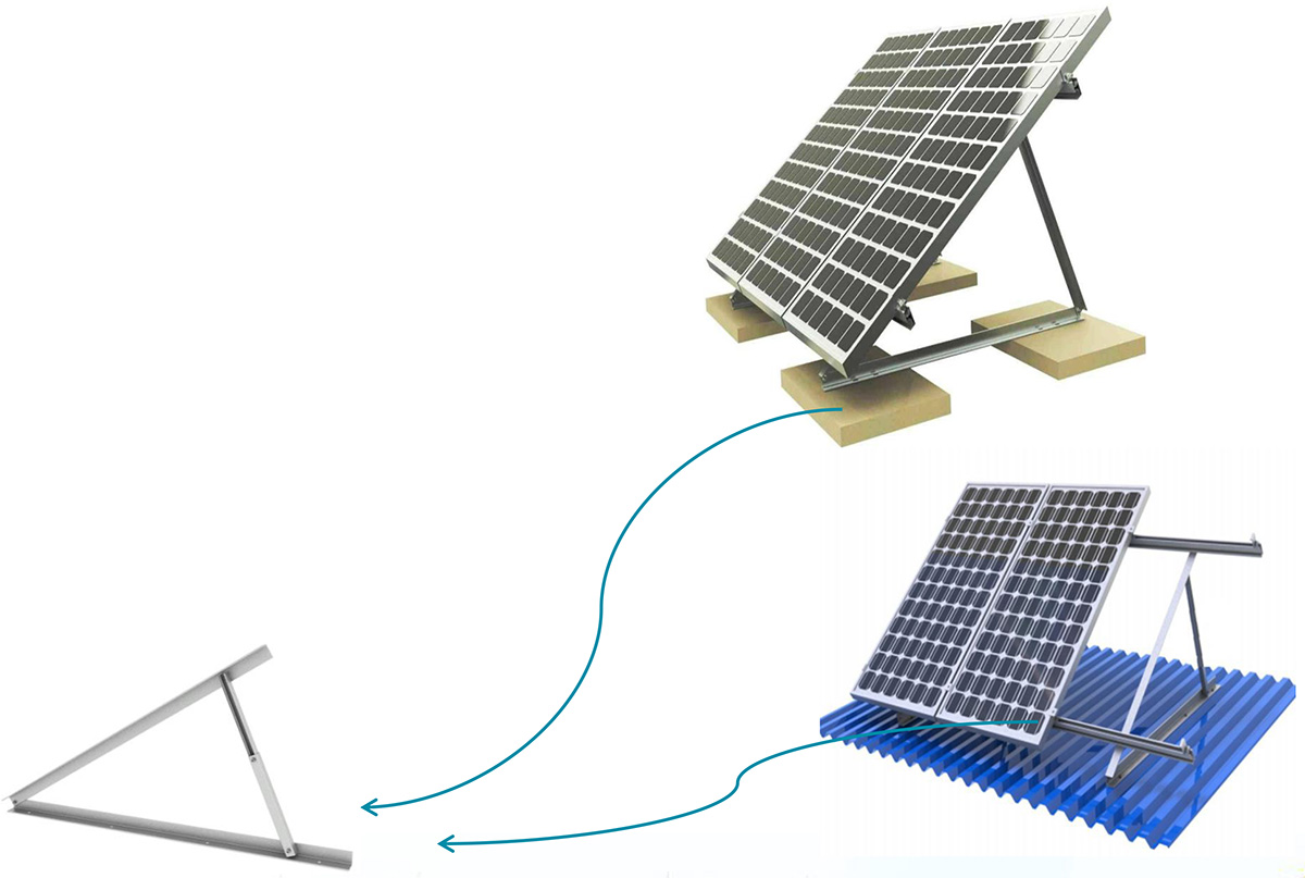水泥平面和彩鋼瓦三角架光伏支架系統
